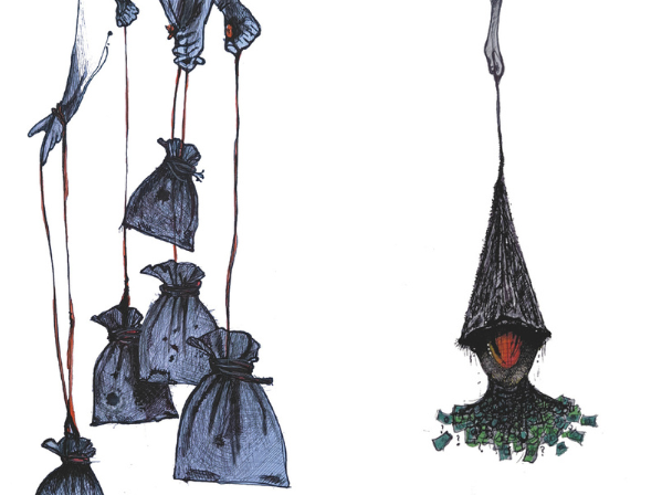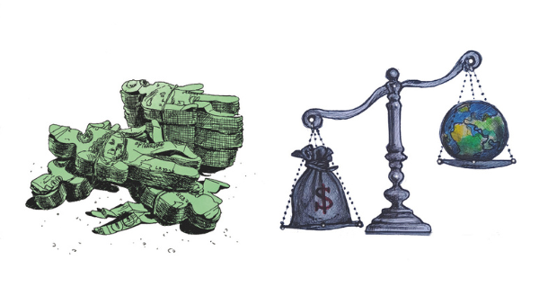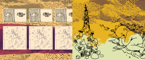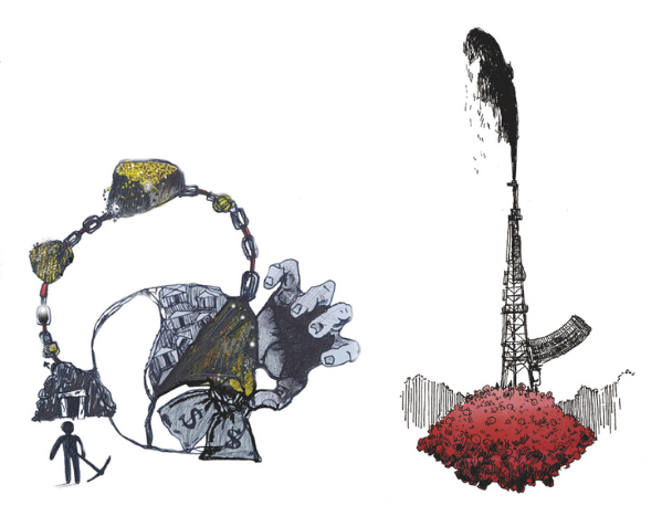 Left — Walter Zand, Who Profits; Right — Walter Zand, Damages Extractivism