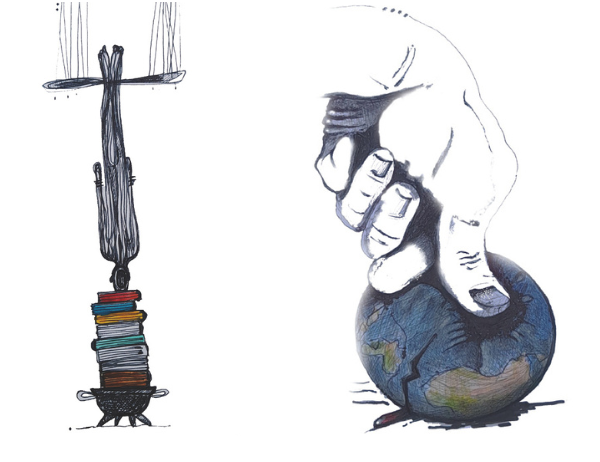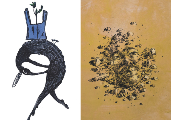 Left — Walter Zand, Tradition, Modernity, The Power of Knowledge; Right — Walter Zand, Slow Violence