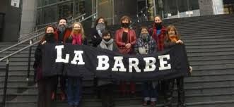 Participants of the French feminist group La Barbe staging a protest