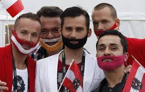 Supporters of Conchita Wurst in Copenhagen wearing fake beards.
