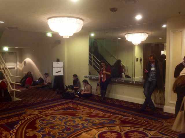 For this particular ‘European savage’, something comes across as a bit odd in all of the above. To begin with, it feels slightly surreal to be in a luxury hotel for a conference. My mind is clouded with bizarre ‘European’ ideals – whatever happened to the notion of scholarship belonging to ‘the public’; as having its home in the ‘public sphere’? Where is the ‘outside’ here, even the imagined kind? What is the AAA fundamentally about; who and what is it for? What is/are the subtext(s) of the meeting? Is it really a huge ‘factory’ of knowledge production? A market place for recent PhD graduates? A place for meeting old friends; a fashion show?