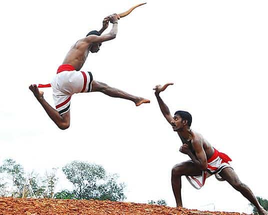 The art of Kalarippayattu is believed by many to be one of the world’s oldest marshal arts, and it is a mastery of movement, and formed on a choreography based upon kicks declined in 8 figures, those being nerkal – straight leg, konkal – leg angle, puramkal – outside leg, tiruccukal – turning leg, tirumkal– step inside, vitukal – circling leg, catiparumkal – outside leg jumping, iruttikal – sitting back leg, as well as 8 postures of animals, namely lion, elephant, rooster, horse, fish, wild boar, snake and cat, and 3 sequences called coq or Elephant suites, and Surya Namaskaram,